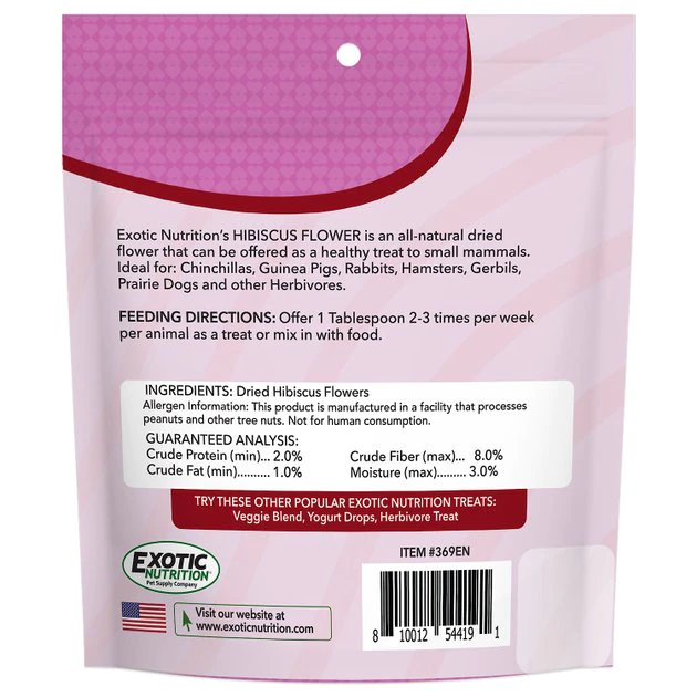 Treat your little fur-iend to a treat that is both nutritious and delicious with the Exotic Nutrition Hibiscus Flower Guinea Pig Treats. These guinea pig treats are made with dried hibiscus flowers, which are a good source of fiber for your cute companion. They’re also small enough to place inside toys, which can encourage your pet to act out his foraging instincts. Plus, not just guinea pigs will love these treats—degus, prairie dogs, chinchillas, squirrels, rabbits, and guinea pigs will go wild for these mouthwatering morsels. Help make sure your pet never gets bored of his diet again!