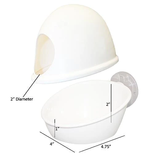 Minimize messes from your mate’s meals with Exotic Nutrition No Mess Press N’ Slide Small Animal Feeding Station. This convenient pet feeding bowl makes serving your sidekick super easy and the dome lid helps prevent spills. Simply press the button on the attachment and his dish will slide out from the holder. You’ll be able to fill it with food or clean out any leftovers without fumbling for hooks or taking half his bedding with you. When you’re done, slide the bowl back and it will lock into place. It’s crafted to be chew-resistant, stain-resistant and fit just about any wire cage without any tools required.