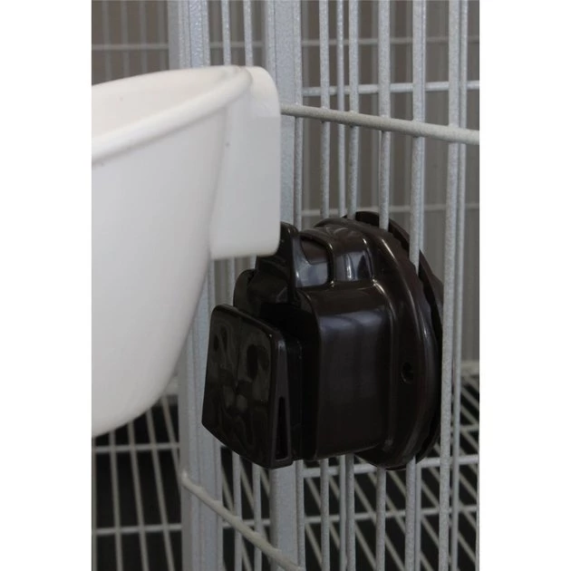Make feeding your furry friend effortless with the Exotic Nutrition Press N’ Slide Small Animal Feeding Station. This convenient pet feeding bowl makes serving your sidekick super easy. Simply press the button on the attachment and his dish will slide out from the holder. You’ll be able to fill it with food or clean out any leftovers without fumbling for hooks or taking half his bedding with you. When you’re done, slide the bowl back and it will lock into place to help eliminate any spills or messes. It’s crafted to be chew-resistant, stain-resistant and fit just about any wire cage without any tools required.
