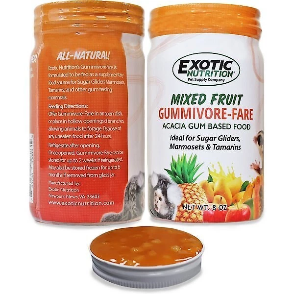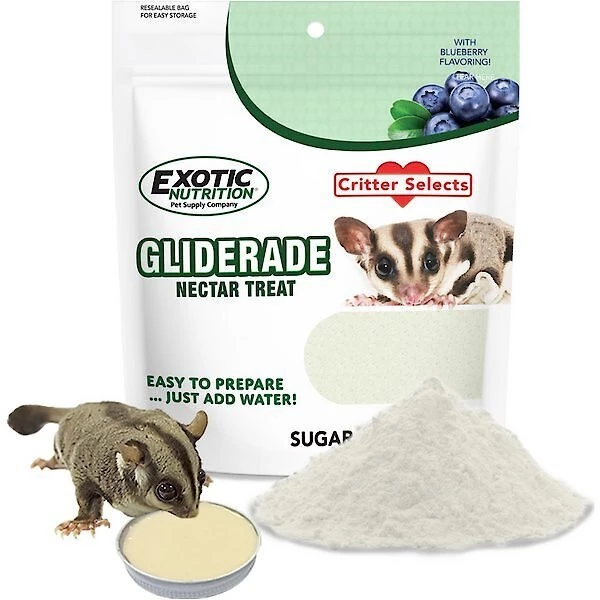 Your sweet sugar glider will love the scrumptious mix of foods included in the Exotic Nutrition Sugar Glider Food Starter Kit. This kit has everything you need to give your little fur-iend a healthy and diversified diet. To meet your glider’s nutritional needs, Glider Complete combines specially-formulated pellets with a delish assortment of dried fruits. When you want to change things up, serve Exotic Nutrition’s Instant HPW and Gummivore-Fare, soft-textured foods made with acacia gum and yucca extract. When it’s time for dessert, mix Gliderade powder with water to form a lip-smacking pudding-like snack, or treat her to Nectar Pods, an irresistible fruit-flavored jelly with added calcium.