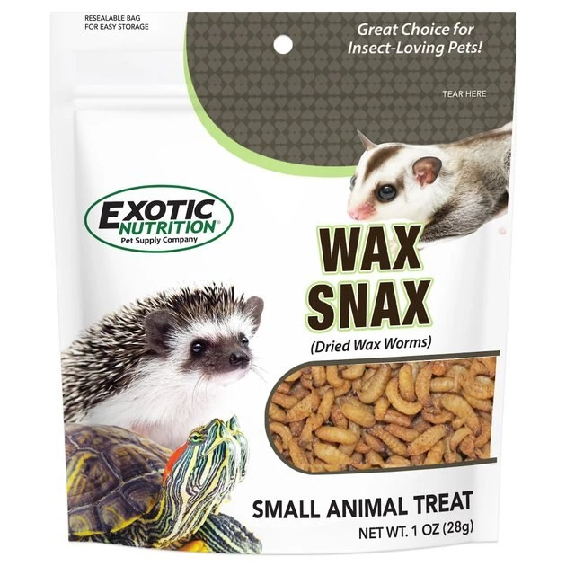 Sweeten your little sidekick’s eating habits with Exotic Nutrition Wax Snax Sugar Glider Treats. These freeze-dried treats are made to reward your pet pal with a little dietary variety. They contain his favorite nutritious snack, farm-raised wax worms. A great source of protein, these tasty worm treats are ideal for sugar gliders, hedgehogs, birds, reptiles and degus. Your little dude is sure to appreciate the occasional break from his daily diet with this tasty treat.