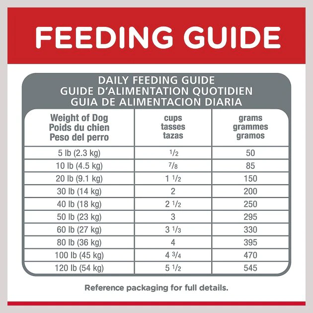 Adjust feeding amounts as necessary to maintain optimal weight. If you are unsure, ask your veterinarian. New to this food? Mix increasing amounts of your pet’s new food with decreasing amounts of the old food over a 7-day period. Keep fresh water available at all times! Your pets nutritional needs may change as they age. Ask your vet at every checkup.