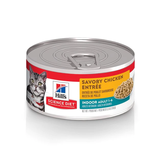 Hill’s Science Diet Adult Indoor Savory Chicken Entree Canned Cat Food provides your four-legged friend with great tasting nutrition for a long, happy life. Made with wholesome ingredients such as savory chicken, this nourishing recipe is balanced to meet your indoor pet’s needs, help maintain a healthy weight and avoid hairballs. Manufactured in the United States, every ingredient meets strict requirements for purity and nutrient content which exceed industry standards. Formulated for adult cats from 1 to 6 years old, this Hill’s Science Diet provides your cat the nutrition she needs for a lifetime of health and happiness.