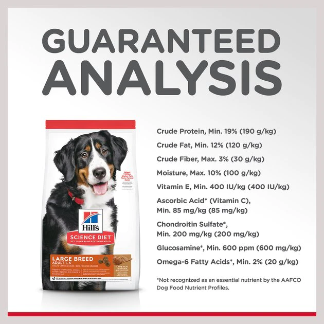 Hill’s Science Diet Adult Large Breed Lamb Meal & Brown Rice Dry Dog Food provides your pup with precise nutrition for a healthy lifestyle. Made with wholesome ingredients such as savory lamb meal and rice, this nourishing recipe is balanced to meet your pet’s needs and support joints and cartilage. Manufactured in the United States, every ingredient meets strict requirements for purity and nutrient content which exceed industry standards. Formulated for large breed dogs weighing 55 to 110 lbs and giant breed dogs that weight 110 lbs and over, this Hill’s Science Diet provides your pooch with the nutrition he needs for a lifetime of health and happiness.
