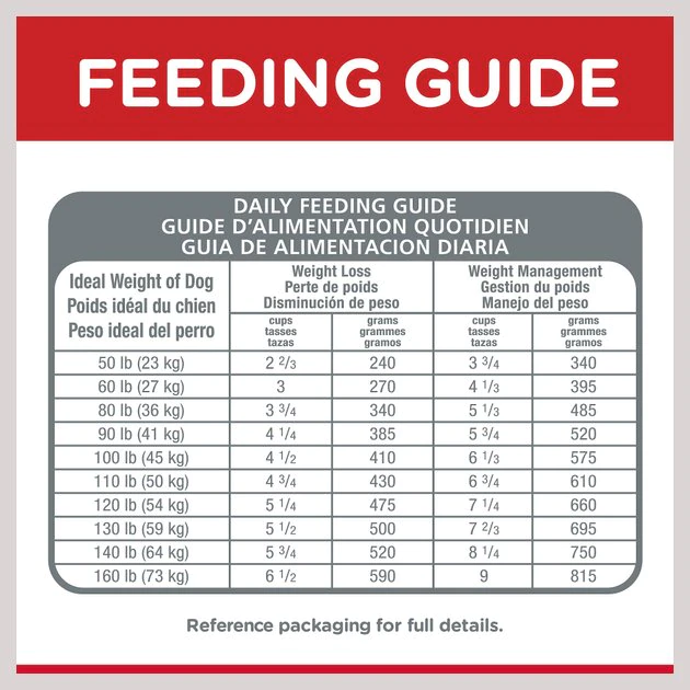 | Ideal Weight of Dog | Weight Loss (cups) | Weight Management (cups) |