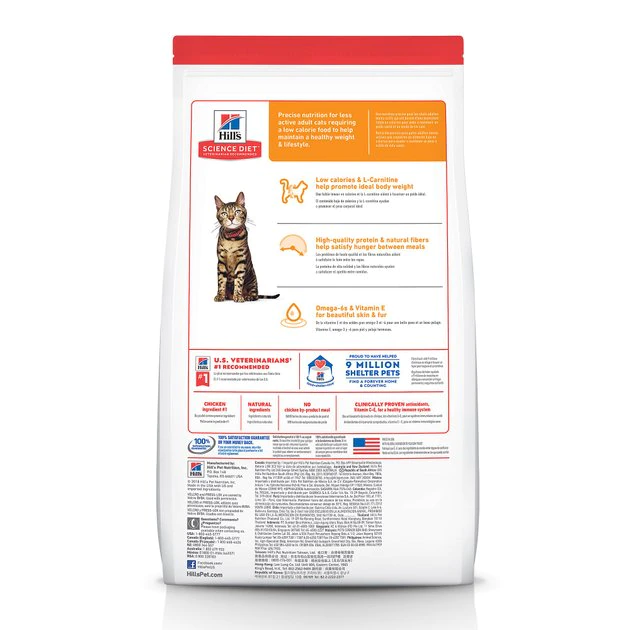Hill’s Science Diet Adult Light Dry Cat Food provides your four-legged friend with great tasting nutrition for a long, happy life. Made with wholesome ingredients such as savory chicken, this nourishing recipe is balanced to meet your pet’s needs, promote a healthy weight and a healthy immune system. Manufactured in the United States, every ingredient meets strict requirements for purity and nutrient content which exceed industry standards. Formulated for adult cats 1 to 6 years of age that require fewer calories, this Hill’s Science Diet provides your cat the nutrition she needs for a lifetime of health and happiness.