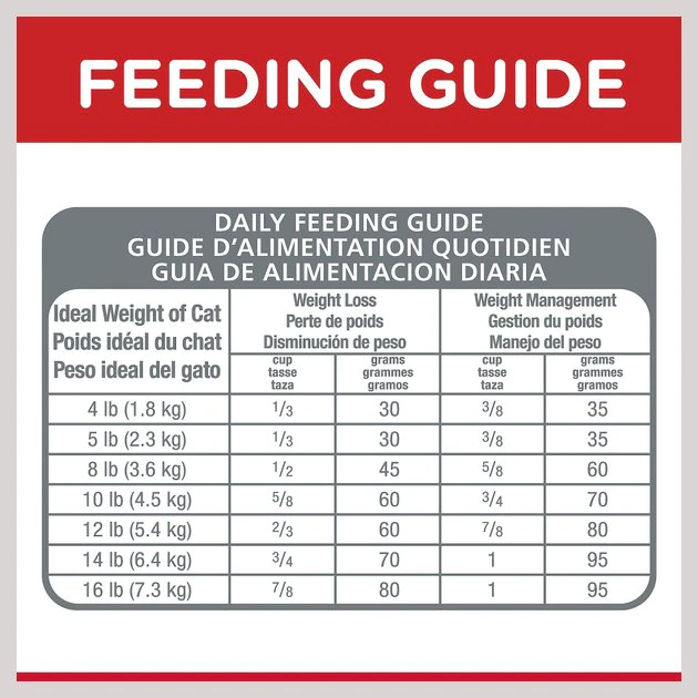 | Ideal Weight of Cat | Weight loss (cups) | Weight Management (cups) |