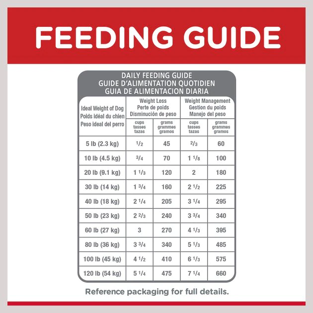 | Ideal Weight of Dog | Weight Loss (cups) | Weight Management (cups) |