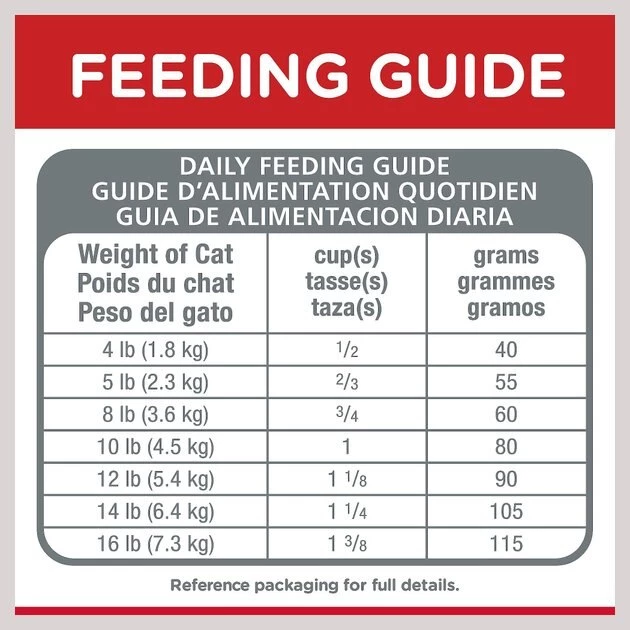 Adjust feeding amounts as necessary to maintain optimal weight. If you are unsure, ask your veterinarian.