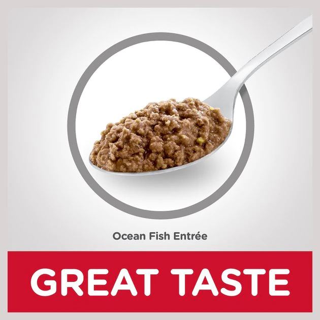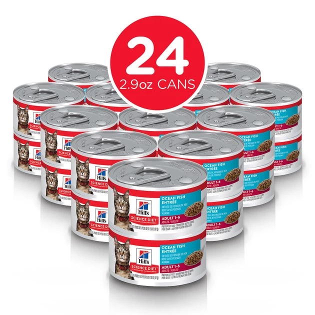Hill’s Science Diet Adult Ocean Fish Entree Canned Cat Food provides your four-legged friend with great tasting nutrition for a long, happy life. Made with wholesome ingredients such as savory ocean fish, this nourishing recipe is balanced to meet your pet’s needs, is easy to digest and helps your kitty maintain an ideal body weight. Manufactured in the United States, every ingredient meets strict requirements for purity and nutrient content which exceed industry standards. Formulated for adult cats from 1 to 6 years of age, this Hill’s Science Diet provides your cat the nutrition she needs for a lifetime of health and happiness.