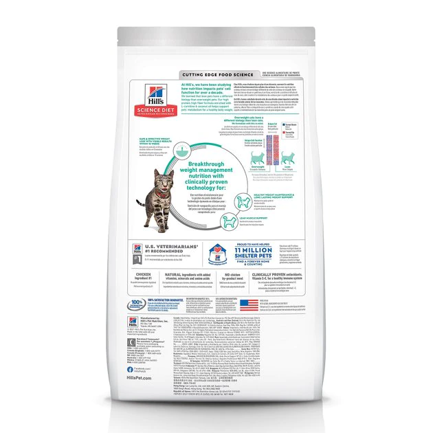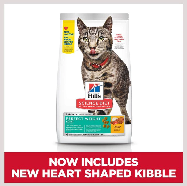 Hill’s Science Diet Adult Perfect Weight Dry Cat Food provides your four-legged friend with great tasting nutrition for a long, happy life. Made with wholesome ingredients such as savory chicken, this nourishing recipe is balanced to meet your pet’s needs, promote weight loss and maintain lean muscle. Manufactured in the United States, every ingredient meets strict requirements for purity and nutrient content which exceed industry standards. Formulated for adult cats that require fewer calories, this Hill’s Science Diet provides your cat the nutrition she needs for a lifetime of health and happiness.
