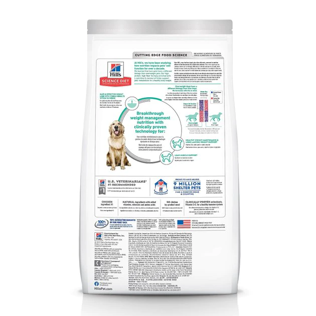 Give your furry friend breakthrough weight management nutrition by feeding him Hill’s Science Diet Adult Perfect Weight Chicken Recipe Dry Dog Food! This yummy recipe is crafted with protein from real chicken to support lean muscle maintenance. It’s specifically designed for adult dogs who need to be mindful of their weight. You’ll love knowing that it’s backed by decades of cutting-edge research, and your dog will love the way every bite tastes!