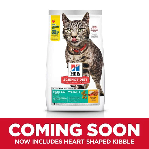 - Adult Perfect Weight’s proprietary ingredient blend helps support your cat’s healthy weight loss while maintaining lean muscle.
