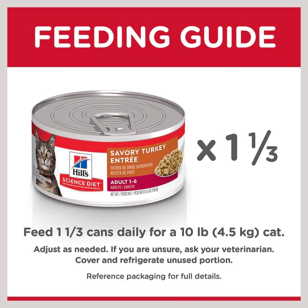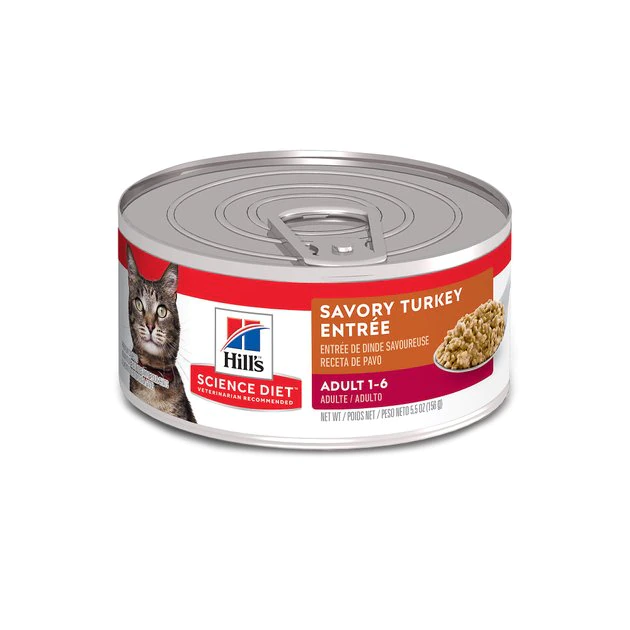 Pam-purr your kitty at every mealtime with Hill’s Science Diet Adult Savory Turkey Entree Canned Cat Food that’s packed with flavorful, nutritious ingredients. While he’s busy licking his bowl clean of the turkey recipe, you’ll feel good knowing he is getting the essential protein he needs to support his muscles. It also helps support his immune system with a combination of antioxidants and vitamins. Plus, the easy-to-digest formula is easy on his belly. With a variety of other flavor options, you can keep him interested all week long!