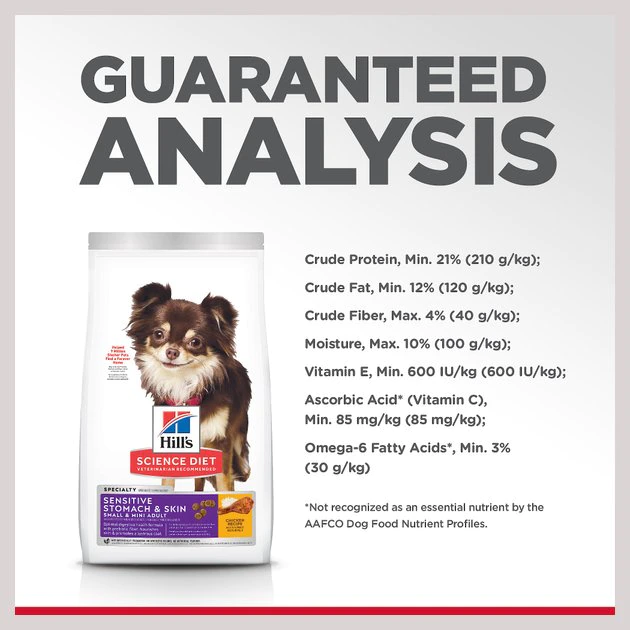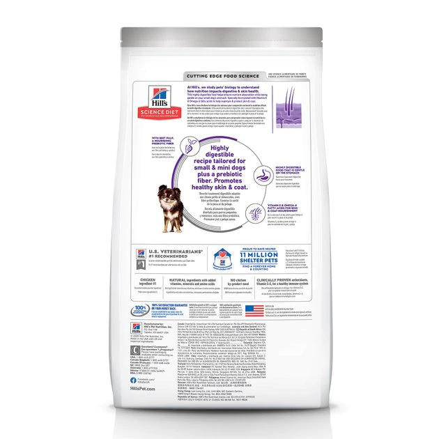 Hill’s Science Diet Adult Sensitive Stomach & Skin Small & Mini Breed Chicken Recipe may be crafted for small and toy breed adult dogs, but it sure packs big benefits! It features natural ingredients, like real animal protein first and it’s packed with antioxidant benefits, too. It’s also formulated to help provide optimal digestive health and help nourish the skin. You’ll love knowing that it’s backed by decades of cutting-edge research, and your dog will love the way every bite tastes!