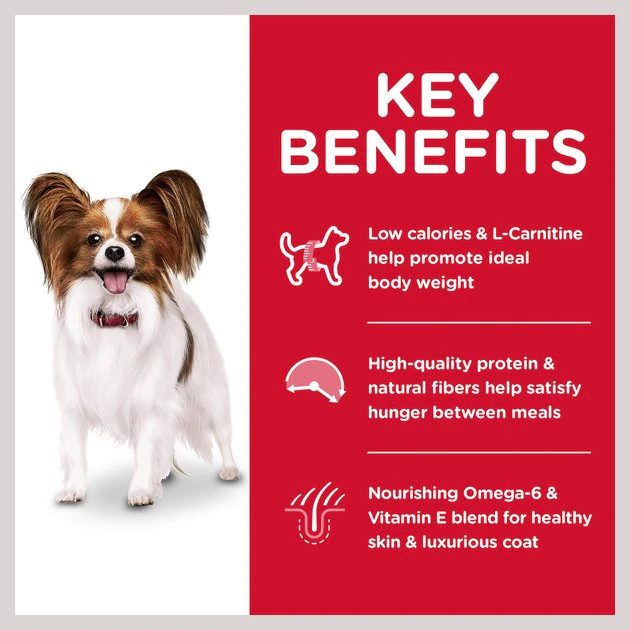 - Contains 19% fewer calories than the Adult Small & Toy Breed recipe to help avoid excess weight gain.
