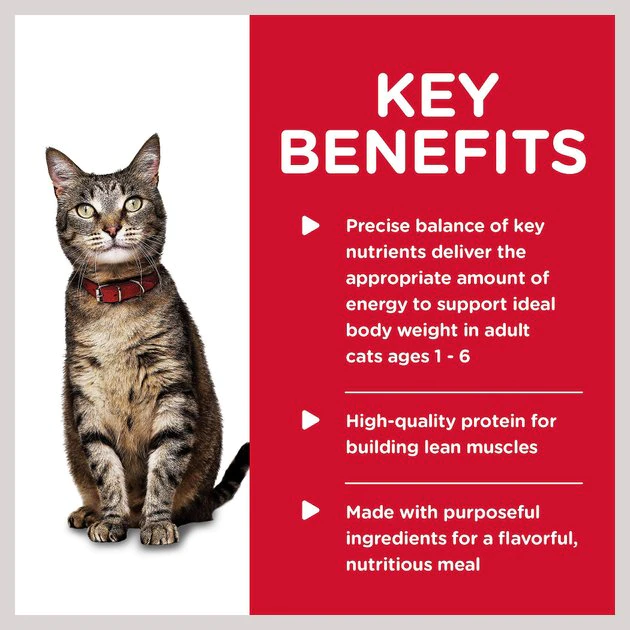 - A complete and balanced diet recommended for adult cats 1-6 years of age.