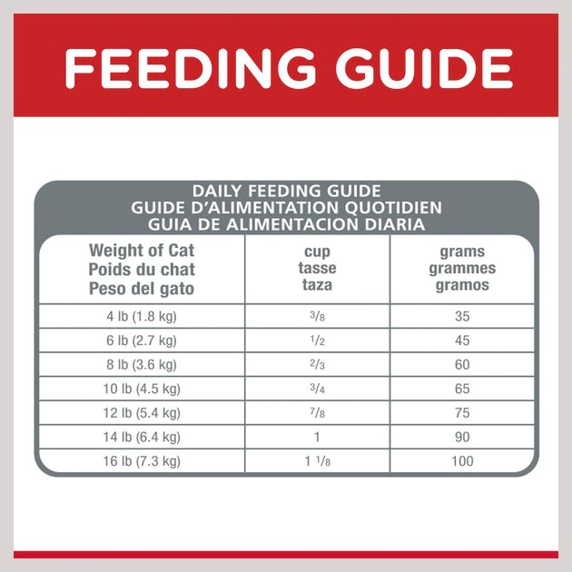 Adjust feeding amounts as necessary to maintain optimal weight. If you are unsure, ask your veterinarian. New to this food? Mix increasing amounts of your pets new food with decreasing amounts of the old food over a 7 – day period. Keep fresh water available at all times! Your pets nutritional needs may change as they age. Ask your vet at every checkup. Science Diet is available in a wide variety of dry and canned foods for your pets unique needs.