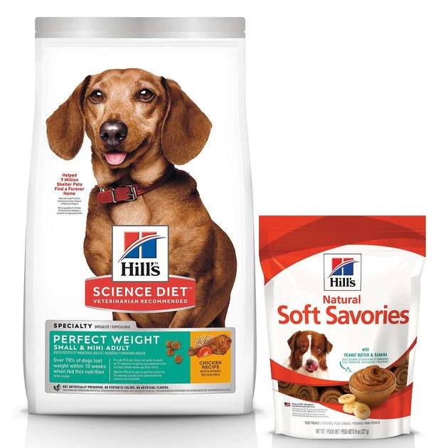 Hill’s Science Diet Adult Small & Mini Perfect Weight Dry Food + Hill’s Natural Soft Savories with Peanut Butter & Banana Dog Treats prove that tasty treats can be healthy too. Hill’s Science Diet Adult Perfect Weight Small & Mini Chicken Recipe Dry Dog Food’s yummy recipe is crafted with protein from real chicken to support lean muscle maintenance and it’s specifically designed for small and toy breed adult dogs who need to be mindful of their weight. Plus, the Peanut Butter & Banana Dog Treats are made only from the best ingredients, with zero artificial flavors or preservatives. You’ll love knowing these products are backed by decades of cutting-edge research, and your dog will love the way every bite tastes!