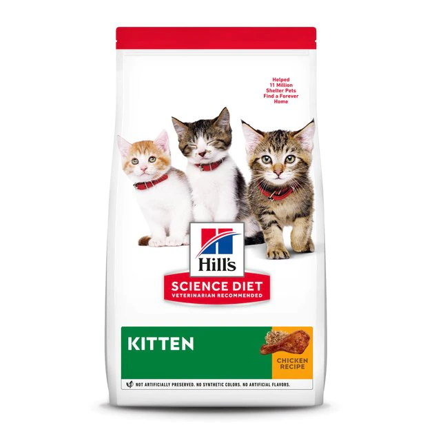 Hill’s Science Diet Kitten Healthy Development Chicken Recipe Dry Cat Food provides your four-legged friend with great tasting nutrition for a long, happy life. Made with wholesome ingredients such as savory chicken, this nourishing recipe is balanced to meet your pet’s needs and support healthy brain and eye development. Manufactured in the United States, every ingredient meets strict requirements for purity and nutrient content which exceed industry standards. Formulated for kittens from weaning until 1 year old and cats who are pregnant or nursing, this Hill’s Science Diet provides your cat the nutrition she needs for a lifetime of health and happiness.