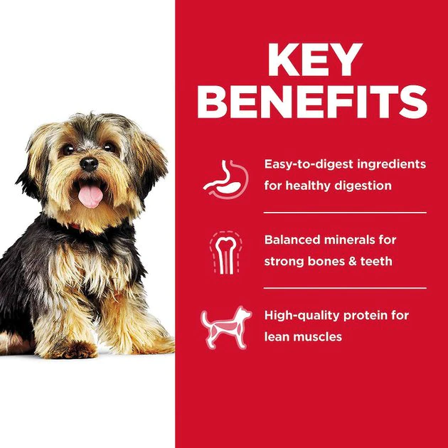 - Premium-quality food delivers the ideal level of lean protein to build muscle and maintain your petite pooch’s ideal body composition.